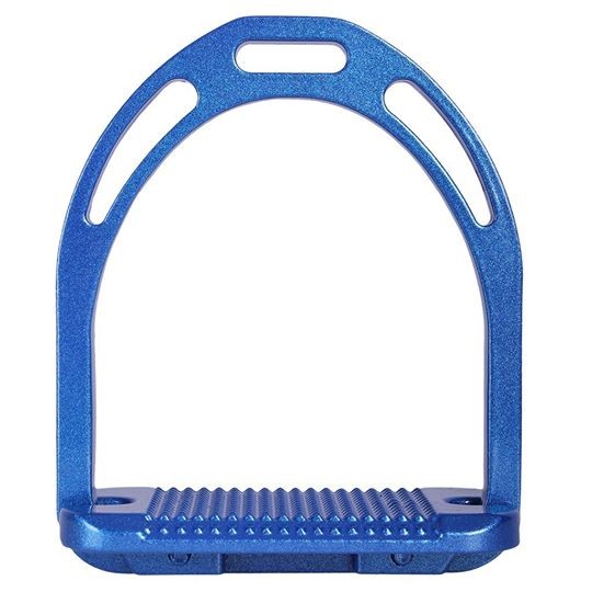 Etriers légers en aluminium. Le vernis métallique leur donne un look tout particulier. Equipest de strilles métalliques pour une bonne tenue du pied.