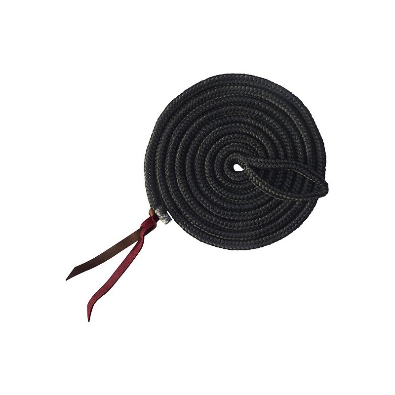 Longe éthologique en polypropylène doux sans mousqueton, avec boucle d'attache au licol à une extrémité et double lien en cuir à l'autre.