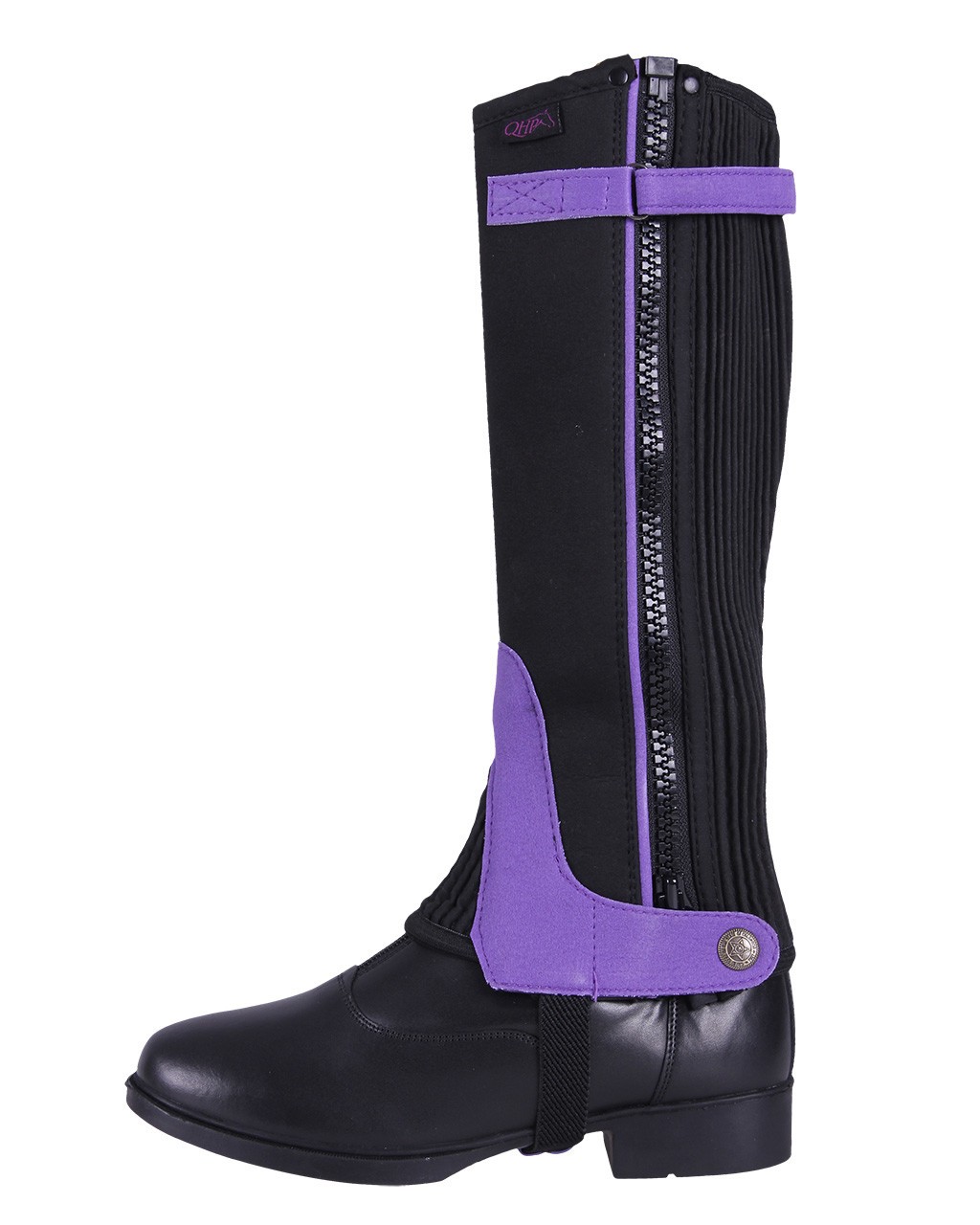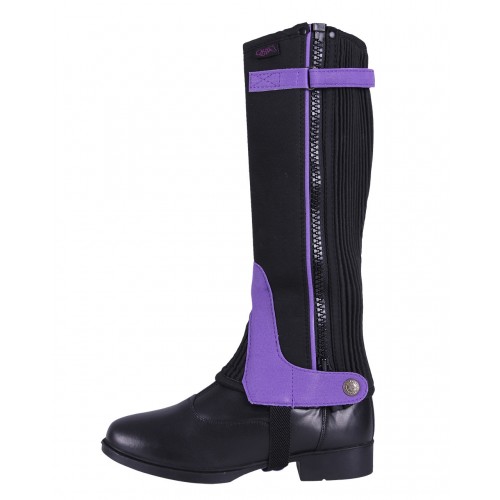 Les chaps parfaites pour le cavalier débutant en daim artificiel. Avec un grand élastique à l'arrière pour un ajustement parfait et disponible dans de jolies couleurs.