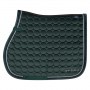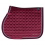 Matériau principal : 100 % polyester Description Tapis de selle classique en velours avec matelassage rond partout. La ligne du dos est faite d'un matériau en maille pour une ventilation supplémentaire. Avec des triples cordons fantaisie le long de la reliure et une jolie broderie de marque en 3D.