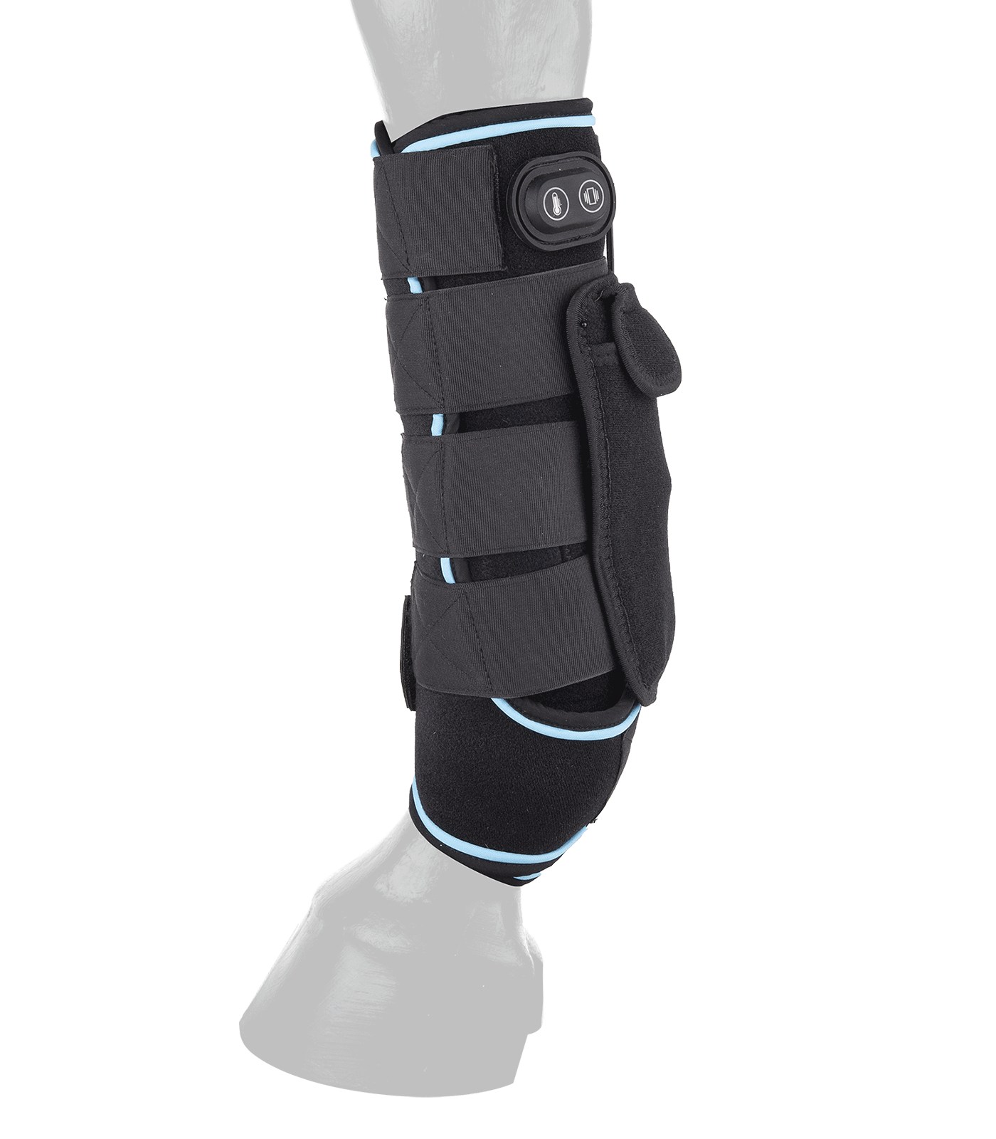 Pour réchauffer et détendre en cas de blessure ou pour détendre après un effort sportif. La nouvelle guêtre W-Health & Care de Waldhausen favorise la régénération des membres du cheval grâce à ses trois fonctions : vibration, froid ou chaleur. En cas de lésion des tendons, la guêtre W-Health & Care peut favoriser le réalignement des fibres du tendon durant la phase de guérison. La fonction de rafraîchissement à usage flexible a une action anti-inflammatoire. Activer simultanément la fonction de vibration permet de minimiser les gonflements et d’activer la circulation sanguine dans le membre. Lors de périodes prolongées au box en hiver, la guêtre W-Health & Care est un allié idéal pour réchauffer l’animal et stimuler la circulation sanguine dans ses membres. Elle rend les tendons plus élastiques, diminuant ainsi le risque de blessure. Les fonctions de vibration et de réchauffement de la guêtre peuvent être activées sur trois niveaux pour s’adapter au mieux aux besoins de votre cheval. La guêtre est livrée dans un joli sac isotherme pour que les poches de glace restent froides sur le chemin de l’écurie. Powerbank, câble de chargement et poches de glace inclus Longueur : 35 cm